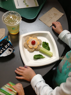 Afterwards we hit the food court and found a new cute very kid friendly restaurant I've been wanting to check out called Bean Sprout. They do super fun food like this flower. Dylan had a spider sandwich and Bryan had a peanut butter piano sandwich. Lots of laughs and fun!